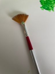 > ご質問の筆ですが、私は使わないので詳しく教える事が出来るかわかりませんが、扇型筆なのでぽんぽんスタンプのように置いて描いていくと、葉っぱや雪などが描く事ができます。何層かに分けて描くと立体的な絵になると思います。(吉武弘樹さんからのメール)